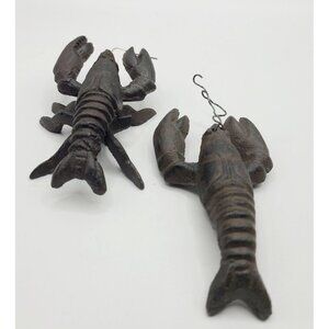 Vintage Cast Iron Lobster Crawfish Figurine Paperweight Nautical Decor Cajun Set