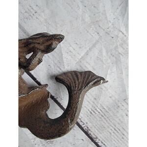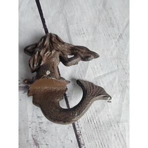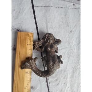 Vintage Cast Iron Mermaid Metal Shelf Sitter 3-1/4" Tall x 3-1/4" Wide has some wear and rusting please see all photos
