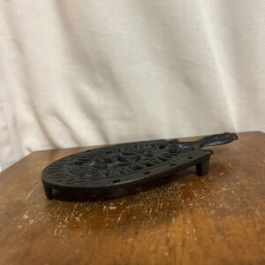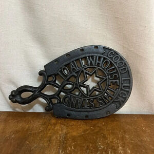 Vintage Cast Iron Metal Footed Trivet Sad Iron Good Luck Horseshoe Star Wilton