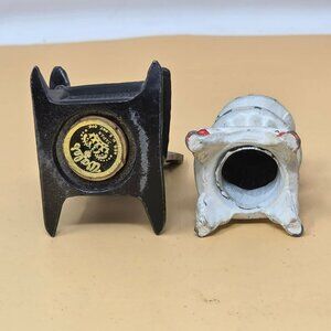 These collectible salt and pepper shakers cast iron miniatures feature intricate floral details, adding a charming vintage touch to decor or miniature displays.