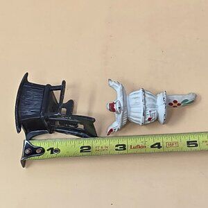 Vintage Cast Iron Miniature Rocking Chair & Stove Set With Floral Accents