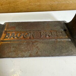 This cast iron bacon press, featuring a charming pig design, ensures even cooking by pressing down on your bacon. The wooden handle provides a comfortable grip, and its durable construction ensures long-term use. A practical and decorative addition to any kitchen.