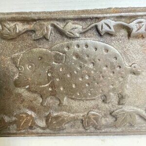 Vintage Cast Iron Pig Design Bacon Press With Wooden Handle