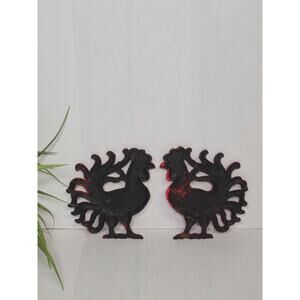 Vintage Cast Iron Rooster Wall Hangings, Red Farmhouse Decor