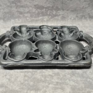 Vintage Cast Iron Snowman 10 Baking Tray Mold Cooking Crafting Winter Christmas