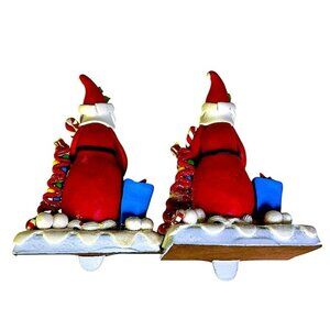 Vintage Stocking Holders Cast Iron Santa Clause Nostalgic Ribbon Candy Hand Painted Christmas Holiday Home Decor Heavy Duty Red White 2 PC Set