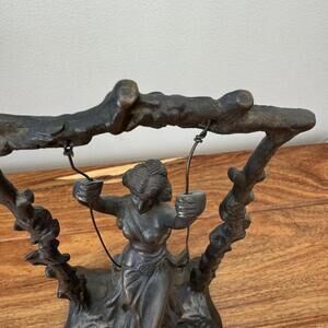 Elevate your home decor with this enchanting vintage cast iron swinging lady figurine. Crafted with intricate details, this piece captures a serene moment of a young woman on a swing, enveloped by a naturalistic frame that adds character to any room. Perfect for collectors or as a decorative accent, it showcases the charm of bygone craftsmanship. Key features include: