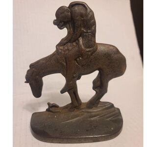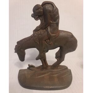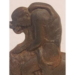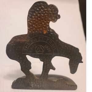 These vintage cast iron bookends bear the inscription "The Last Trail" and are marked with the date 1930 by the Connecticut Foundry. The brown color adds to their antique charm, making them a unique and decorative accessory for any home or garden. Perfect for book lovers or collectors of vintage items, these bookends are a testament to the craftsmanship of a bygone era.