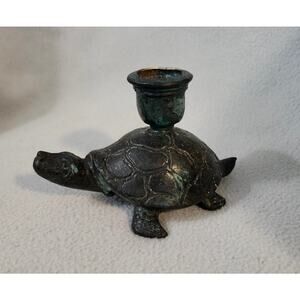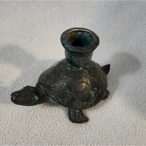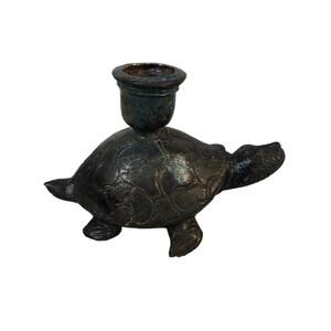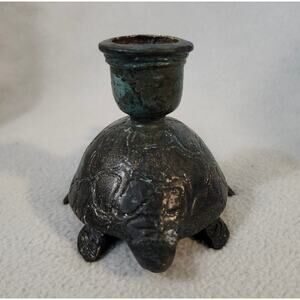 Selling this vintage cast Iron metal Turtle Candle stick Holder