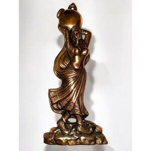 Vintage Cast Iron Wall Art Plaque Copper Finish Woman Carrying Jug #348