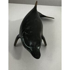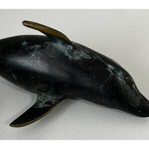 Vintage Cast Metal Bronze Dolphin Sculpture 7” Decor Turquoise