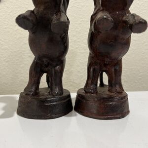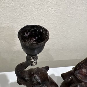 Vintage Cast Metal Elephant PAIR Candle Holder Trunk Up Good Luck Rearing