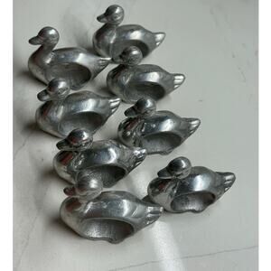 Vintage Cast Metal Silver Duck Napkin Ring Holders Lot of 8