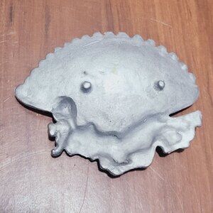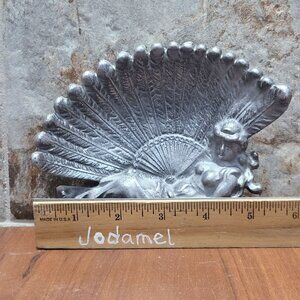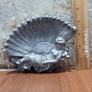 Vintage Cast Metal Trinket Dish Feather Fan Boudoir Lady