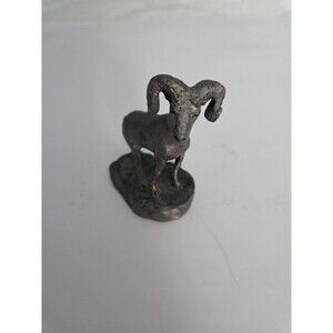 Vintage Cast Pewter Bighorn Ram Figurine Statue. Figure is approximately 3.5" tall and 3" wide.