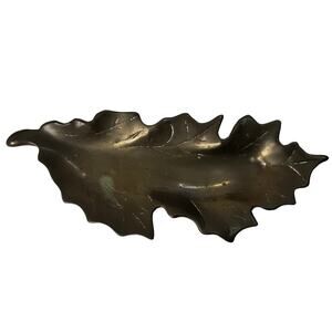 Vintage Cast Solid Brass Oak Leaf Dish Tray Trinket Keys Jewelry Holder