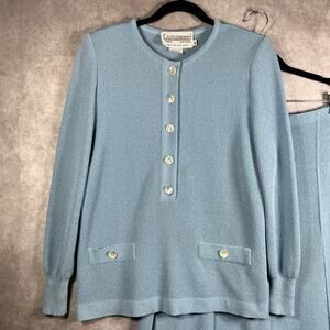 Vintage Castleberry Skirt Set Womens 14 Blue Knit 2-Piece Cardigan Skirt Career