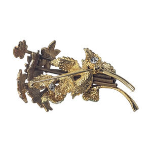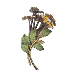 Style: Classic mid-century costume jewelry aesthetic; vibrant enamel florals with sculpted leaves.