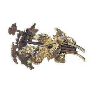 Item: Very Rare Vintage floral bouquet brooch/pin in gold-tone metal with colorful enamel accents that is a trembler