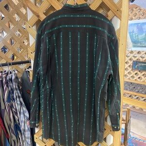 Vintage Casual Black and Green Striped Button Down Shirt