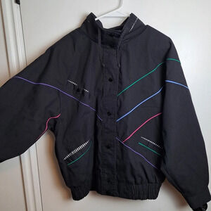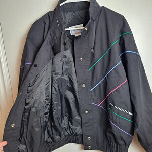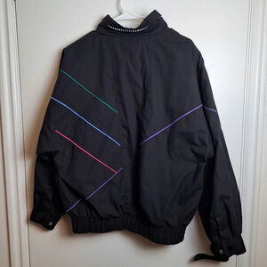 Vintage Casual Club Black Neon Stripes 80s Oversized Bomber Jacket Sz Medium