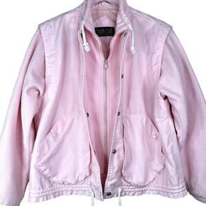 Vintage Casual Club Light Pink Chore Jacket Snaps Zipper Drawstrings Pockets MED