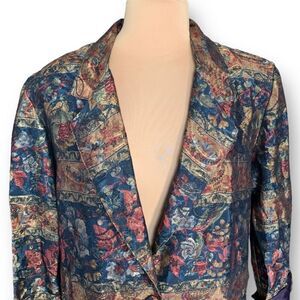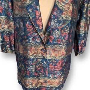 Vintage Casual Corner Blazer Jacket Navy Dark Floral Oversized Sharp Shoulder