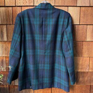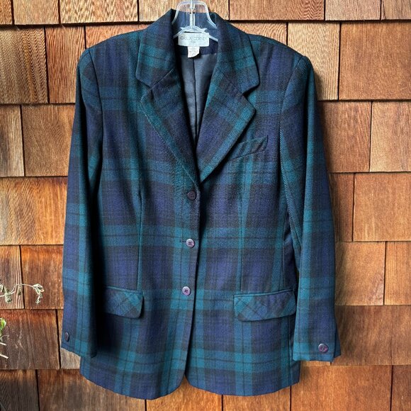 Vintage Casual Corner Blue/Green/Black Tartan Plaid All Wool Blazer - Women's 10