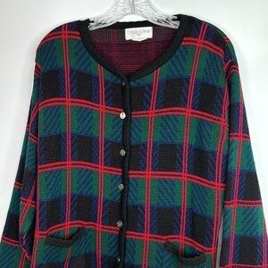 Vintage Casual Corner Tartan Button Up Sweater Large