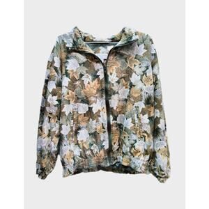 Vintage Casual Corner Women's Bomber Jacket Size M Silk Zip Up Leaf Fall Print