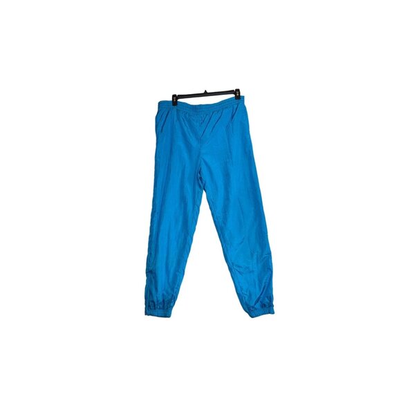 Vintage Casual Isle Blue Nylon Jogger Pants With Elastic Waist & Cuffs