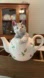 Charming ceramic teapot featuring a playful cat design. Adorned with delicate pink and green floral accents. Perfect for cat lovers and tea enthusiasts alike.