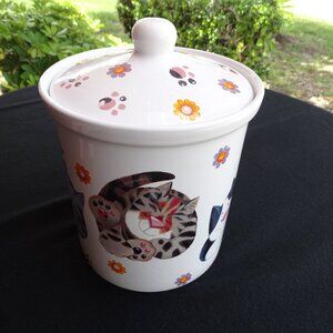 Vintage Cat Cookie Jar 9"Tx6.25"W with Paw Prints