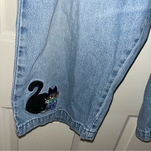 Vintage Cat Embroidered Blue Denim Pants Jeans KT Sport 31” M cropped retro