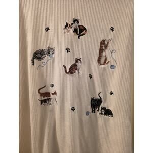 Vintage Cat Embroidered Waffle Weave Shirt Tee Womens Sz MP Kittens BonWorth Playful Kitties Crazy Cat Lady GrandmaCore Granny Chic Retro Cottagecore Boho Farmhouse Country Whimsical