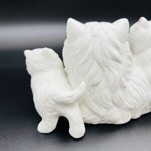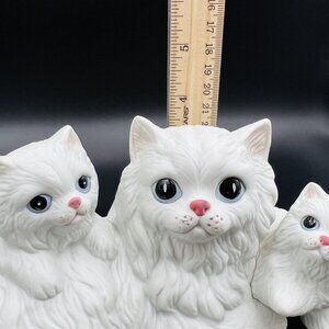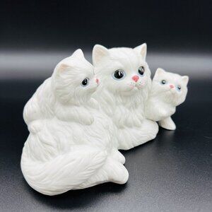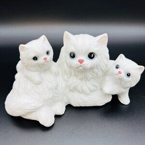Charming vintage Homco cat figurine set featuring a white mamma cat and her kittens in a laying pose. Perfect for collectors or cat lovers. Excellent used condition, adding a touch of nostalgia to your home decor.