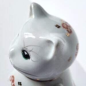 Keywords/Tags: cat teapot, koi fish spout, porcelain animal teapot, hand painted ceramic, whimsical kitchen, gold accents, cottagecore decor, lucky cat, kitsch, collectible teapot, cat lover gift, pottery figurine, chinoiserie style, white cat pitcher