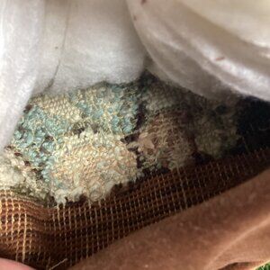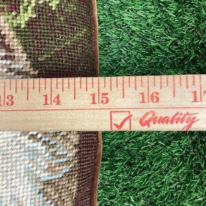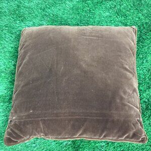 I believe this was hand done but can't say for sure, looking inside you can see where they did all the needlework. Beautiful piece, I think vintage of a long haired calico cat amongst flowers. Set on a brown velvet back. The top on the back has a couple of holes on the edges, I think they may have thought about putting tassels but then didn't. It can zip closed and the pillow is removable.
