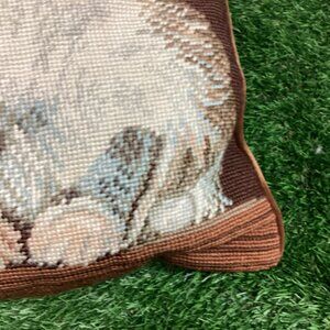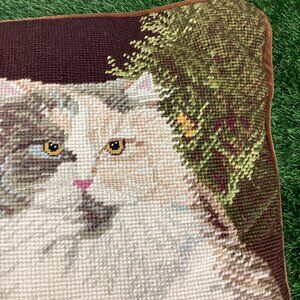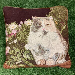 Vintage Cat Needlepoint Tapestry Pillow Long Haired Calico