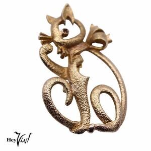Vintage Cat Pin Brooch w Detailed Cut Out Design 2" Top to Bottom - Hey Viv