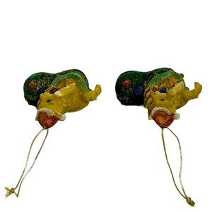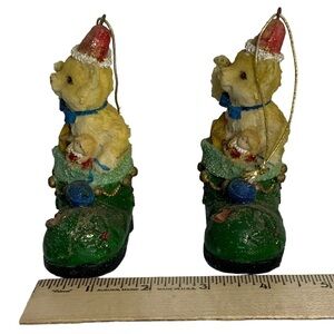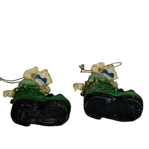 Vintage Christmas Tree Ornaments Puss in Boots Cat in a Irish Green Sparkling Boot Set of 2