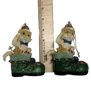 Vintage Cat Puss in Boots Ornaments Christmas Tree Decor Cats in Boots Set of 2