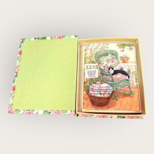 Vintage Cat Quilts Flowers Chair Themed 12 Note Cards Envelopes Set