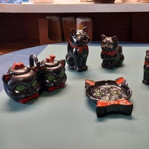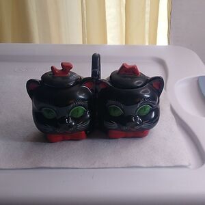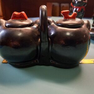 Vintage Cat Redware Anthropomorphic Connected Jelly Jars Kitch