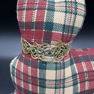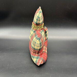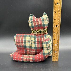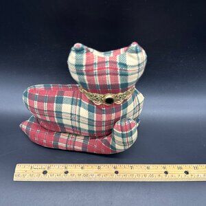 Vintage Cat Shaped Throw Pillow Red Green Plaid Stuffed Animal Kitty Kitten