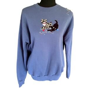 keywords: vintage Christmas cat sweatshirt, Morning Sun cat sweater, embroidered cat pullover, Top Stitch sweatshirt, leopard print kitten applique, black cat holiday sweater, women’s novelty sweatshirt, 90s cat clothing, fuzzy applique top, cozy animal lover shirt