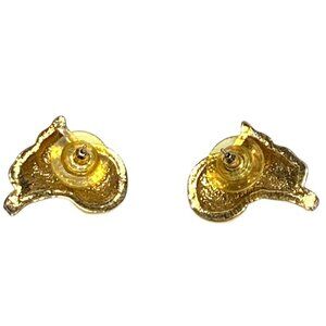 Vintage Cat Themed Gold Tone Post Earrings For Pierced Ears 1.5"