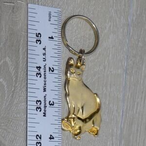 This vintage keychain features an adorable cat and kitten playing with a ball of yarn. The gold finish adds a touch of elegance and charm. Perfect for cat lovers and collectors!