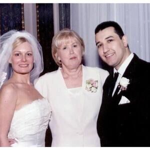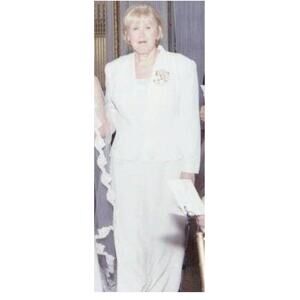 This is my Mothers outfit from my wedding in 2003. It's hard to photograph but is just beautiful in person. Feels like crepe, lightweight and well made.