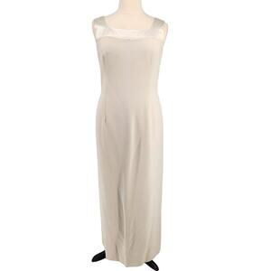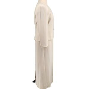 Cream sleeveless column dress with back slit with matching long sleeve jacket